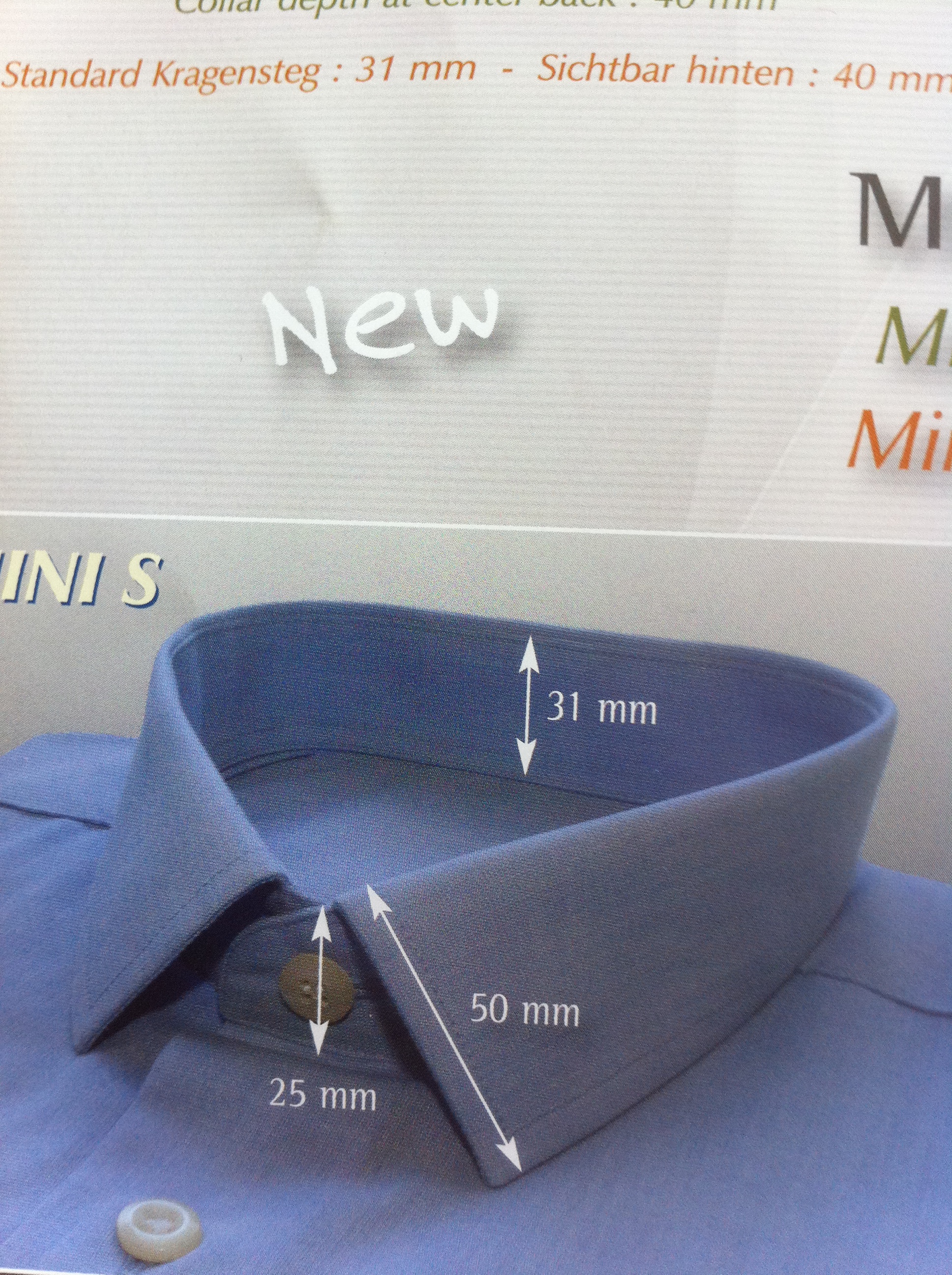 Tout d’abord il faut savoir qu’il existe environ 20 modèles de cols avec trois hauteurs de pied de col 25mm, 31mm et 36mm pour les cols hauts pour les personnes ayant un cou long et que chaque hauteur de pied de col détermine une longueur de pointe de col.